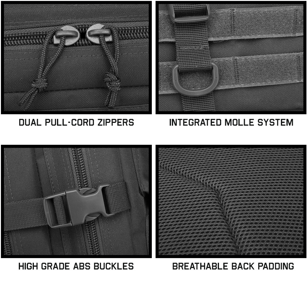 - Multipurpose: The perfect 3 day assault pack and combat molle backpack; a great outdoor EDC pack, conceal carry bag and gun range bag for handguns and ammo.