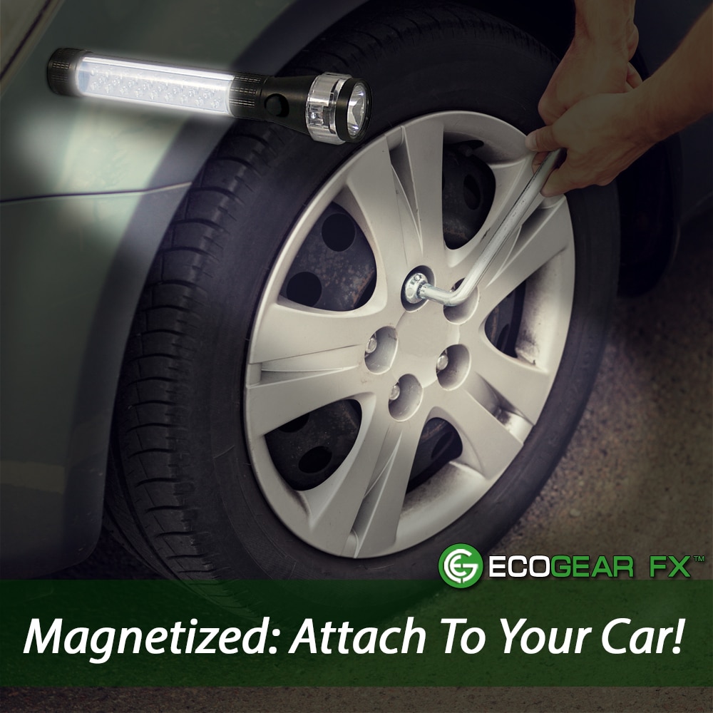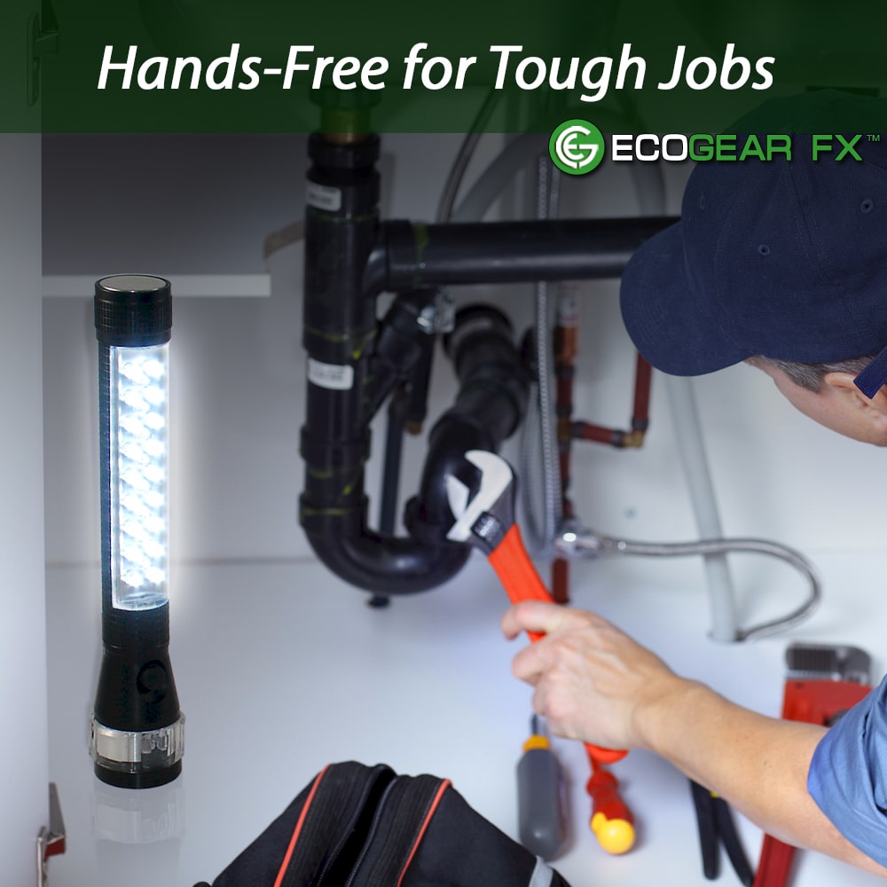 Equipped with a main LED flashlight, 18 side LEDs, and 11 red LEDs. The EcoGear FX EM70 multi-function LED worklight flashlight is built to provide you with brilliant light for any emergency or survival situation and can be used as a work flashlight. It comes with a sturdy magnetic base, and can easily latch onto metal surfaces for hands-free usage. The military-grade aluminum structure makes it weather resistant and shockproof. Makes a great gift for father’s day, Christmas, birthdays and more.