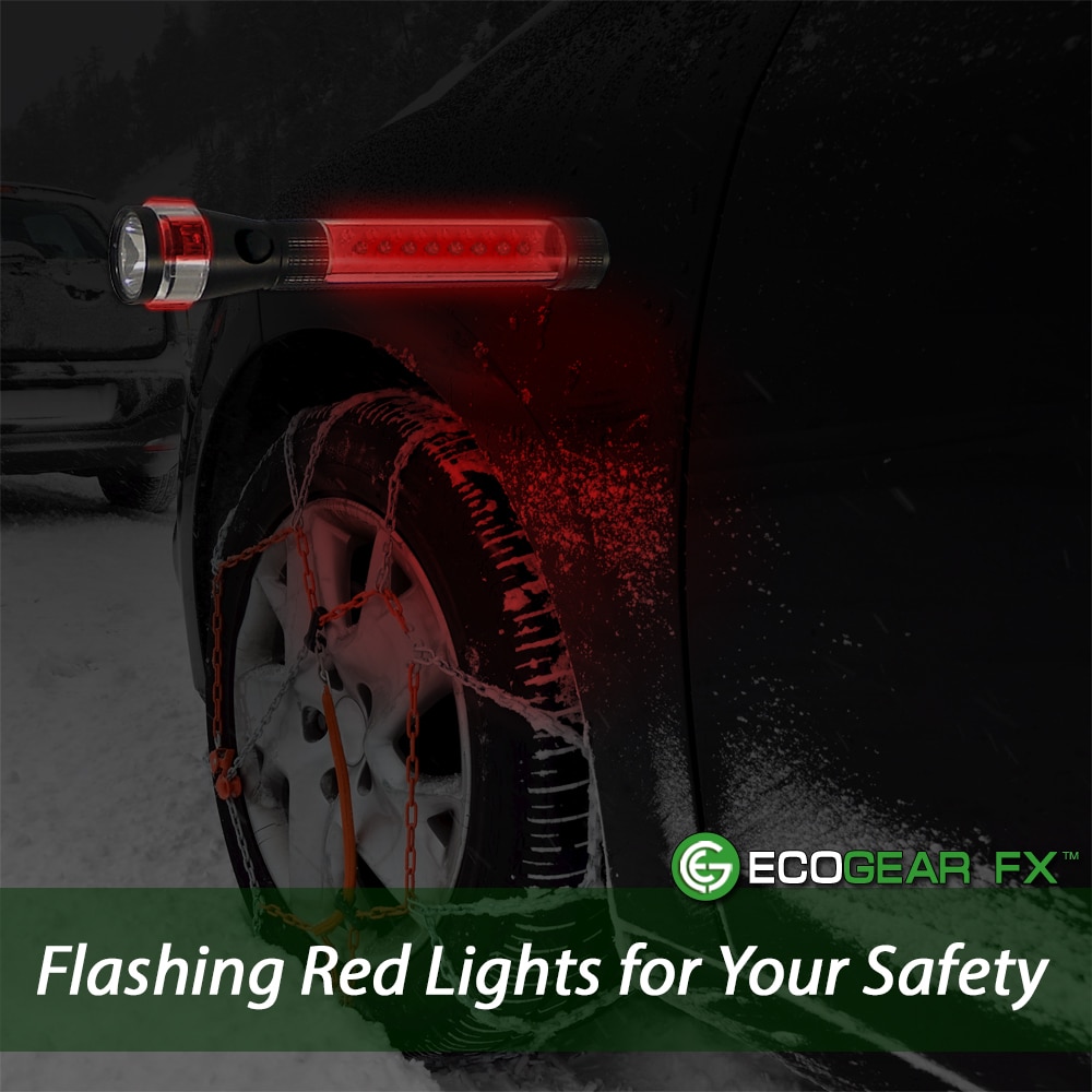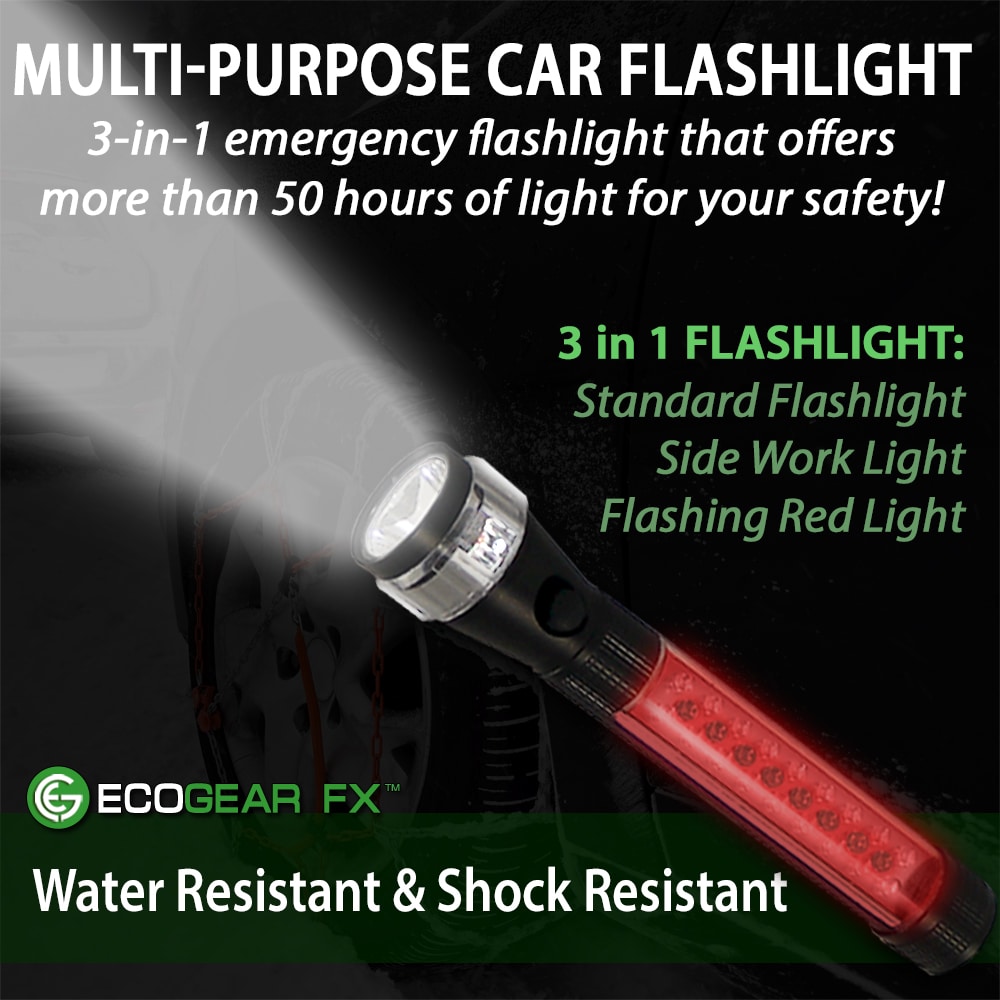 - 3-in-1 emergency tool: main LED light in the flashlight head & 26 LED’s (8 flashing) in the barrel
