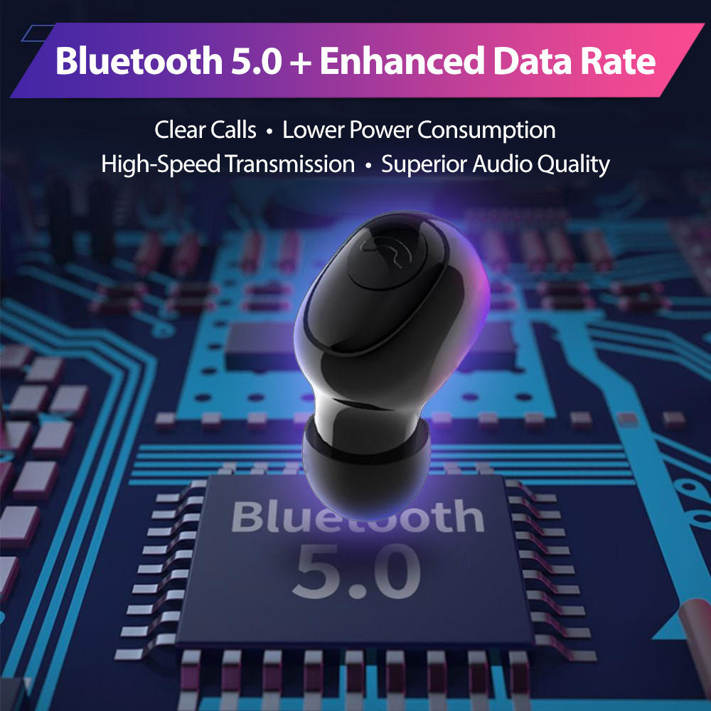 - Extended Runtime – Wireless earphones with a built-in 2000mAh rechargeable battery charging case allow 3-5 hours of runtime on a single charge.